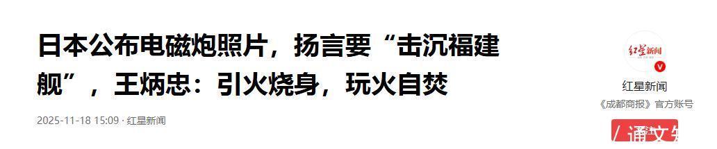 2025-11-18 15:09·红星新闻 日本公布电磁炮相片,扬言要“击千里福建舰”,王炳忠:引火烧身,玩火自焚